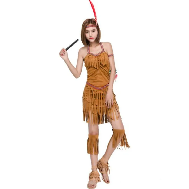 BEST Adults Female Bonfire Party Tassel Primitive Cosplay Costume Women Lady Performance Costumes Party